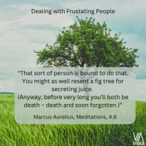 On Dealing with Frustrating People “That sort of person is bound to do that. You might as well resent a fig tree for secreting juice. (Anyway, before very long you’ll both be death – death and soon forgotten.)” - Marcus Aurelius
